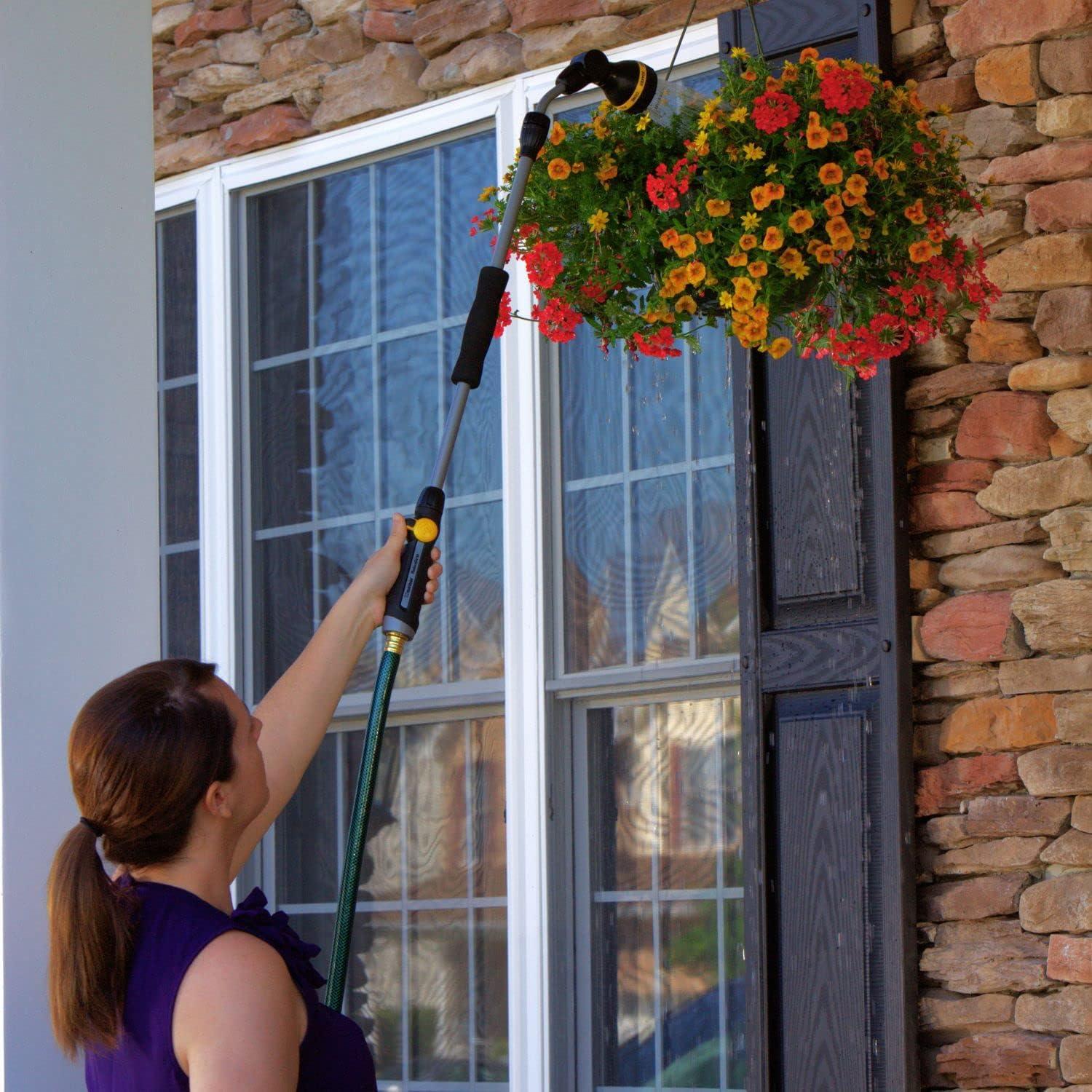 RelaxGrip handles are designed to provide a more comfortable grip, so you can get more chores done with ease. Adjust the water flow with the thumb control, eliminating extra strain on your hands. The pivoting head makes it easy to adjust the spray angle. Choose between patterns to water the flowers with a gentle shower or use a more powerful jet for hard to reach cleaning jobs.
