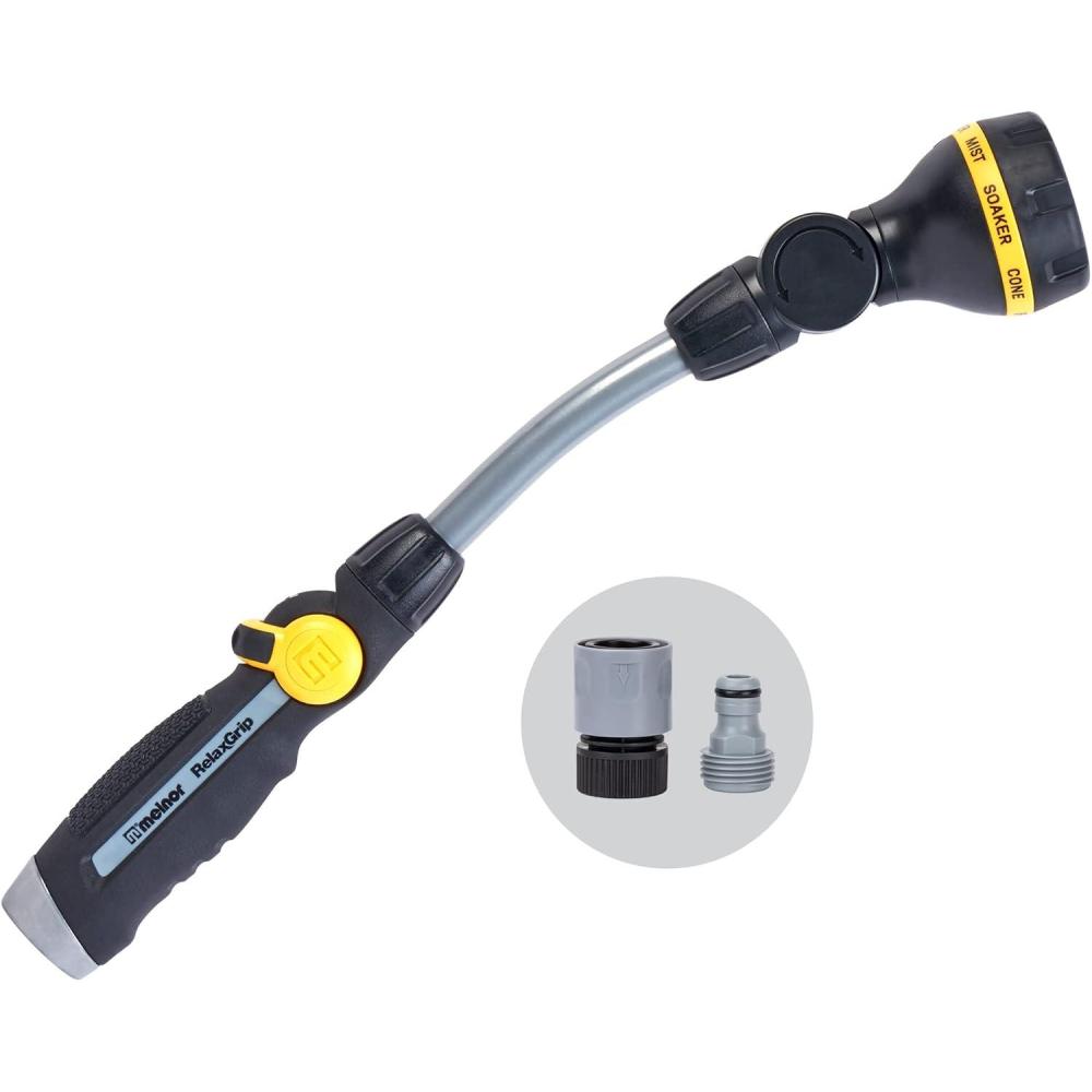 Melnor 65173AMZ RelaxGrip 8 Pattern 16" Pivoting Wand Bundle, Metal, Black, Yellow