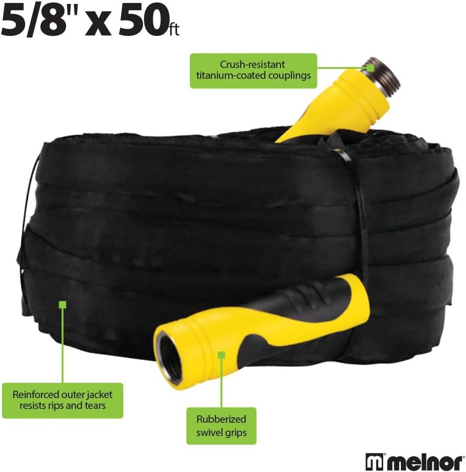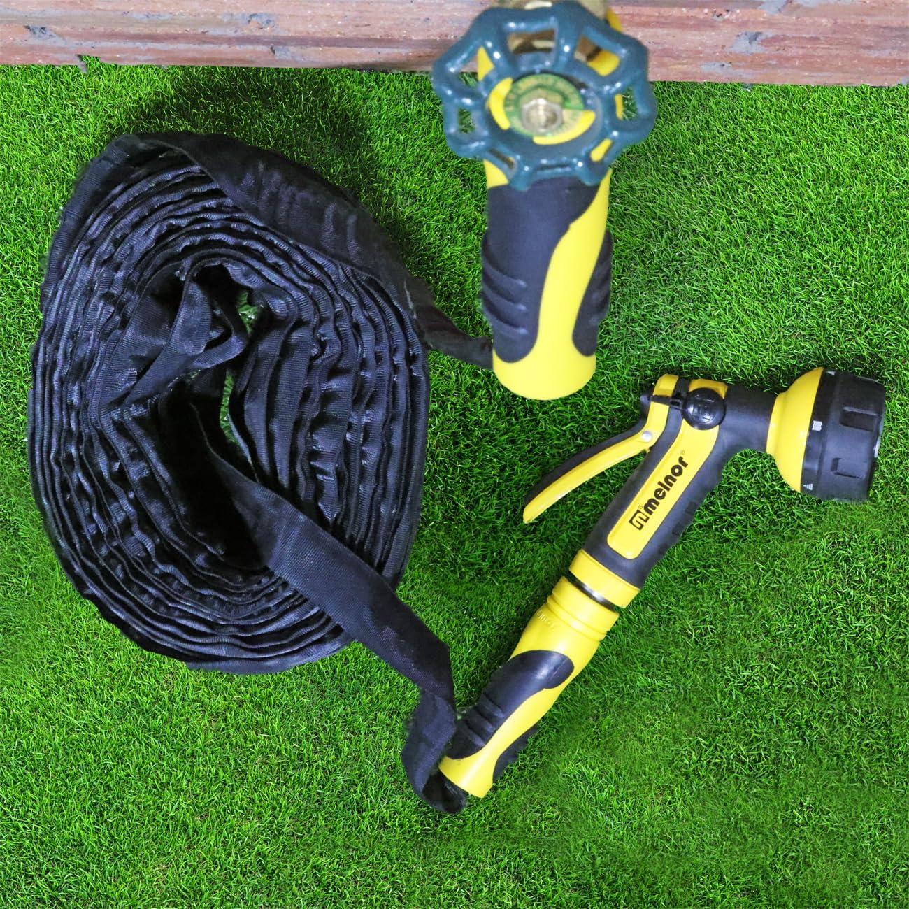 Melnor 89050AMZ Fabric Garden Hose 5/8" x 50ft- Updated Inner Tube- Heavy Duty- Lightweight - BPA-Free, Drinking Safe- UV Resistant- Crush-Proof Couplings - Easy Connect - Flexible - Black/Yellow