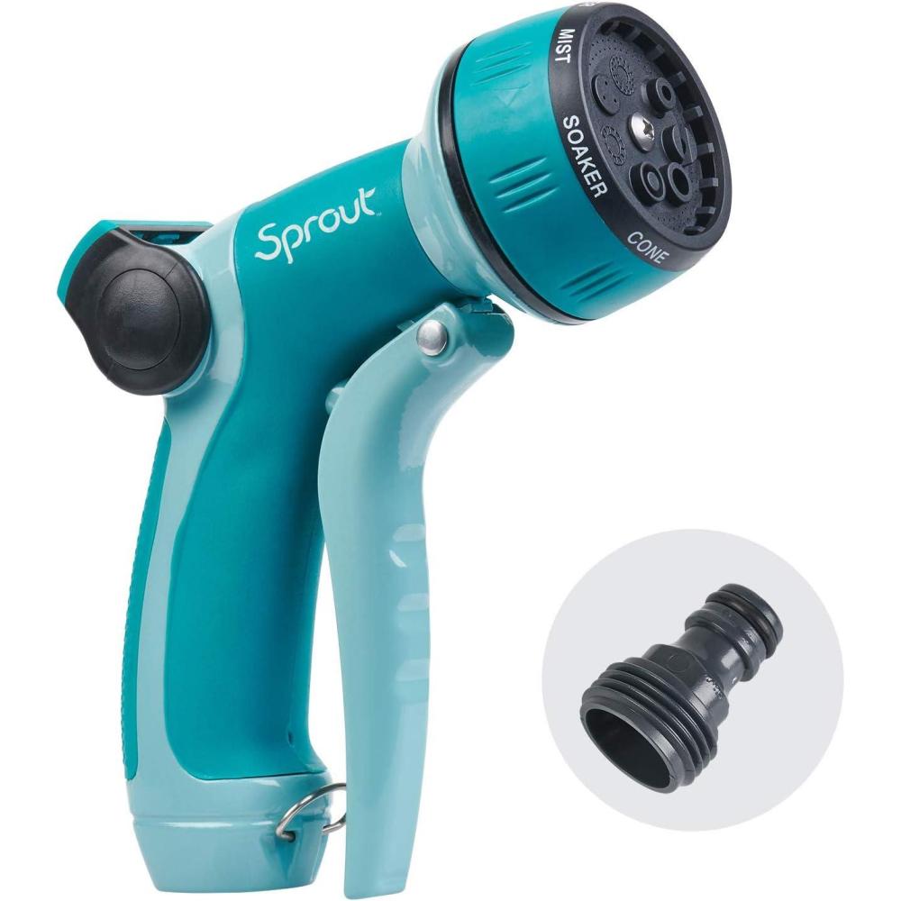 Sprout 65108-AMZ Metal Front Trigger 7-Pattern Nozzle and QuickConnect Product Adapter Amazon Bundle, Blueberry Blue(Gooseberry Green)